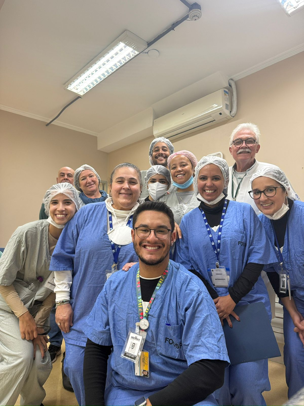 Dessa forma, alguns alunos foram selecionados para participar, e desde então, afirmam que têm aprendido muito com a experiência, além de poderem vivenciar algo inédito nos estágios da FOUSP. Para explicar um pouco mais sobre essa oportunidade, a aluna da graduação Rebeca Gutierrez conta um pouco de seus dias de estágio: “A experiência de estagiar em um hospital de grande porte, que engloba múltiplas equipes e atende diferentes perfis de crianças, está sendo incrível! Fiquei ansiosa ao saber que este é o primeiro estágio em que nossa faculdade firma um contrato estadual com um hospital de referência no atendimento a pacientes pediátricos, com ou sem comorbidades sistêmicas. Estou tendo a oportunidade de atender vários pacientes e aprender, cada vez mais, o manejo individual com cada um, considerando idade, etnia, comorbidades…Também estou conhecendo uma realidade diferente, que muitas vezes a experiência e a autonomia adquiridas apenas dentro da faculdade não conseguem proporcionar. Descobri que transformar o consultório em um ambiente seguro e acolhedor é essencial, e que escutar uma criança vai muito além das palavras: é perceber o que ela comunica com os olhos, com o corpo e até com o silêncio. E, claro, tudo isso também tem me ajudado a desenvolver a tão temida, mas necessária, autonomia.”.