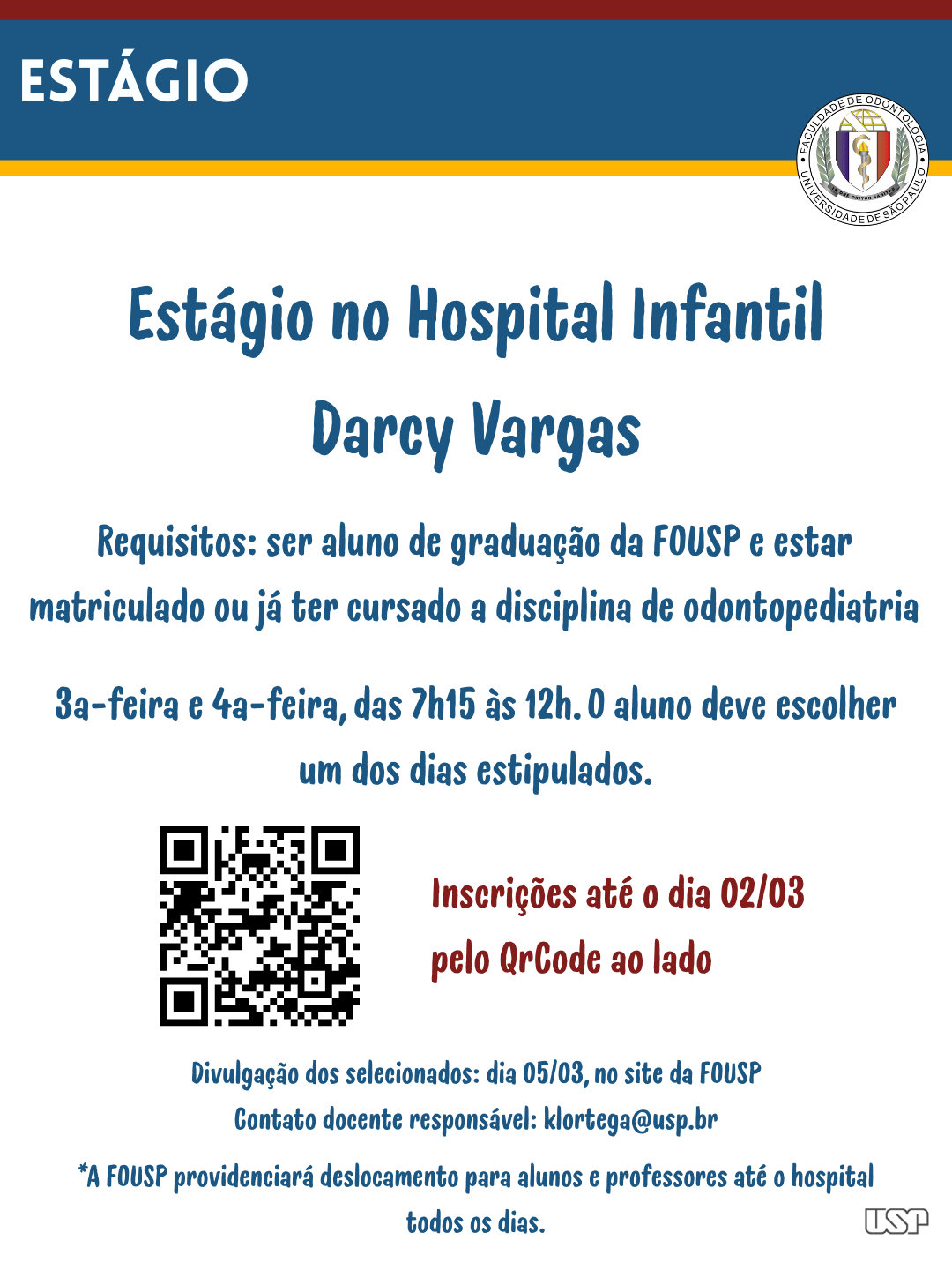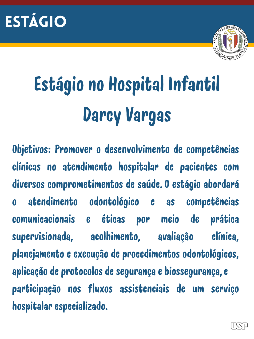 Post publicado:20 de fevereiro de 2026 Categoria do post:Notícias Autor do post:Theo Filizzola Você também pode gostar Evento inédito reúne as Faculdades de Odonto da USP e fortalece pós-graduação3 de setembro de 2024 1a Oficina sobre Avaliação da Aprendizagem na graduação – Modernização Curricular6 de novembro de 2023 Estágio no SUS para alunos de graduação da FOUSP. Inscrições´até 05/04/202427 de março de 2024 PEEG-Programa de Estímulo ao Ensino de Graduação (monitoria), para o 1º semestre de 202313 de dezembro de 2022